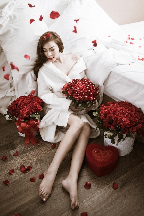 Lễ tình nhân - Valentine năm nay, một người bạn đã hé lộ clip hậu trường bộ ảnh Quỳnh Thư sexy, nóng bỏng đến ngẹt thở. Với bối cảnh là căn phòng ấm áp, trên chiếc giường với ga gối trắng tinh được nhấn nhá bởi hoa hồng và hộp quà trái tim đỏ rực, bằng ngôn ngữ hình thể, Quỳnh Thư đã khiến bộ ảnh thách thức phái mạnh hơn bao giờ hết.