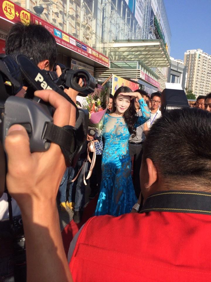 Mới đây một nhãn hàng đã mời Củng Nguyệt Phi làm gương mặt đại diện. Xuất hiện với bộ váy xanh trong suốt khoe thân như thường lệ, ngay lập tức diễn viên "Tân Phan Kim Liên" lập tức thu hút được sự chú ý. Rất đông người dân hiếu kỳ đã đổ ra đường và chạy theo để chụp ảnh. Để ngỏ lời "cảm ơn" với khán giả, Củng Nguyệt Phi đã lên sân khấu hát một bài.