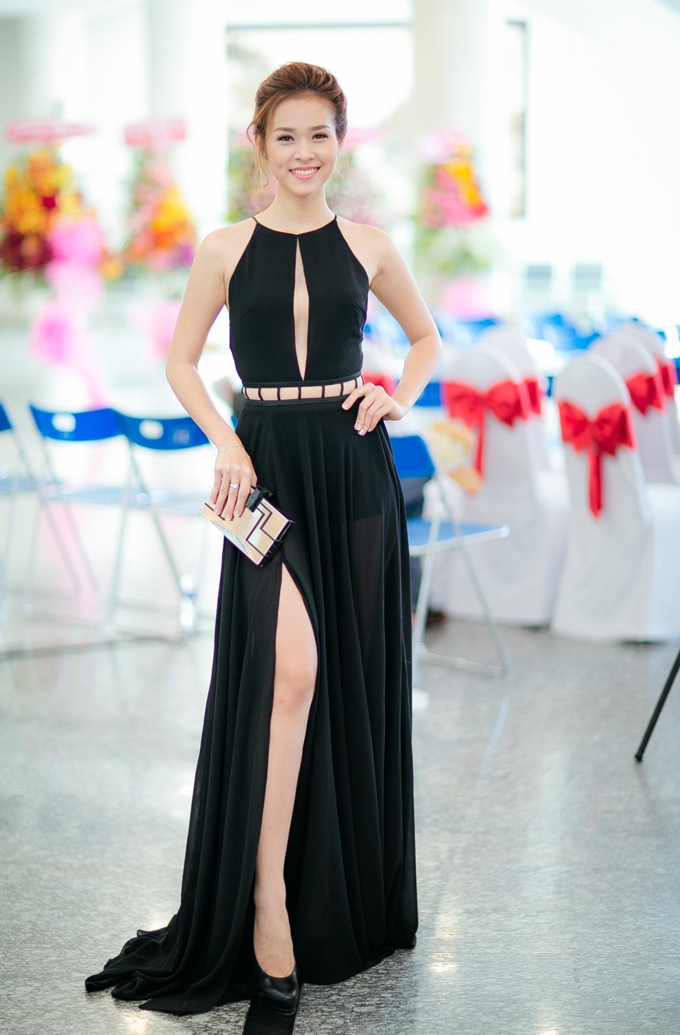 Có mặt tại sự kiện, Diệp Bảo Ngọc khéo léo chọn một thiết kế cắt cúp tinh tế, gợi cảm của Ivan Trần. Chính sự cẩn trọng trong cách chọn trang phục giúp người đẹp tránh góc nhìn phản cảm từ người đối diện. Không chỉ vậy, cô cùng Trương Nam Thành và MC Mỹ Linh đảm nhận vai trò cầm cân nảy mực trong một cuộc thi về làm đẹp.