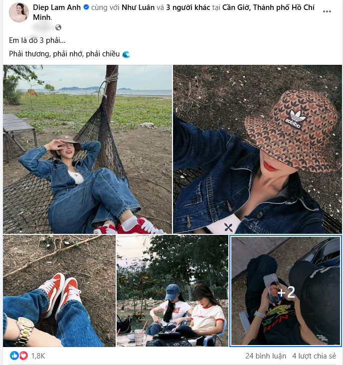 Tối 20/5, trên trang cá nhân, Diệp Lâm Anh bất ngờ đăng tải loạt ảnh trong chuyến du lịch cùng nhóm bạn thân thiết. Không những thế, cựu người mẫu còn tag (gắn thẻ) bạn trai tin đồn là người mẫu Phạm Kiên vào bài viết.