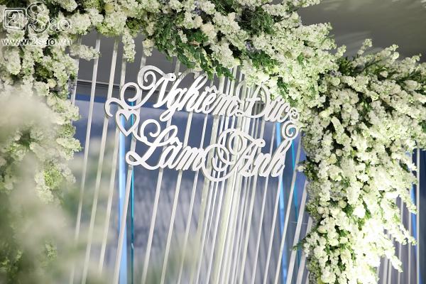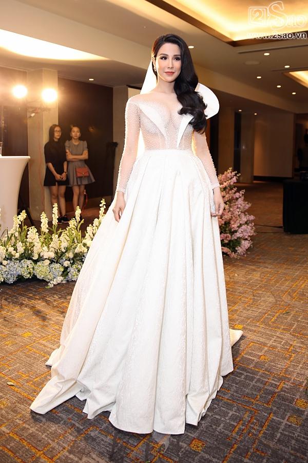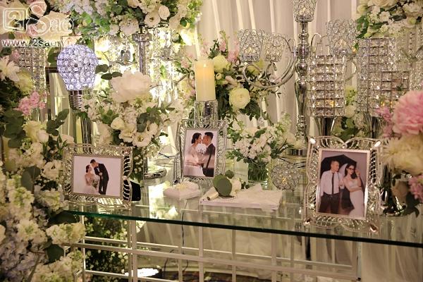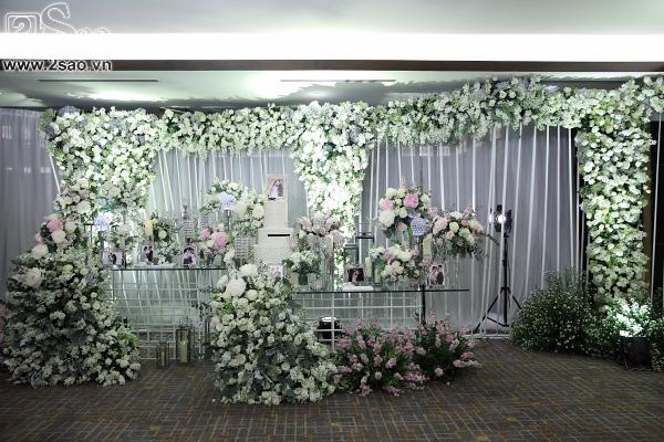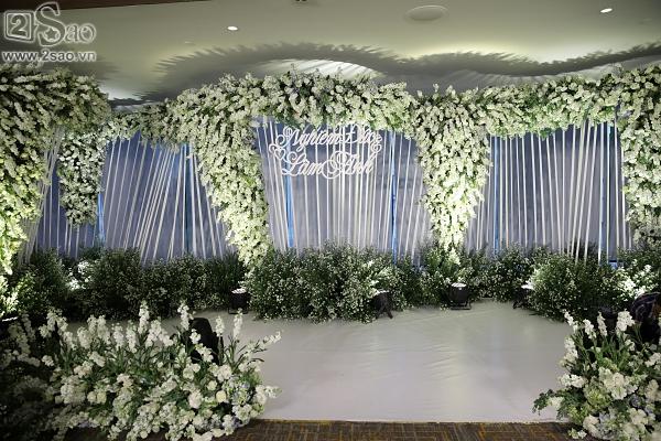 Nếu như trong buổi lễ rước dâu theo nghi lễ truyền thống được nhà Diệp Lâm Anh trang trí tông màu đỏ vàng thì tại buổi tiệc tối, tông màu chủ đạo được lựa chọn là trắng.