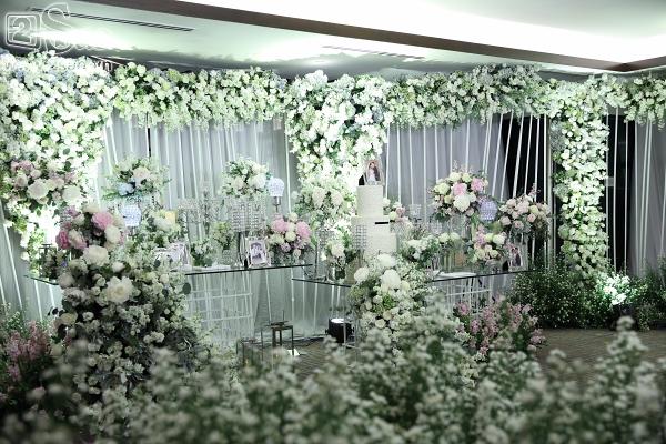 Tông màu chủ đạo của tiệc cưới tối là trắng