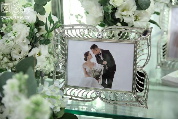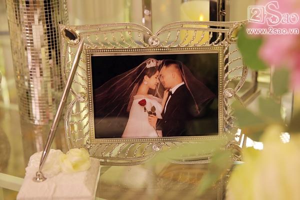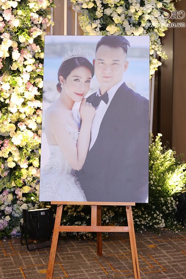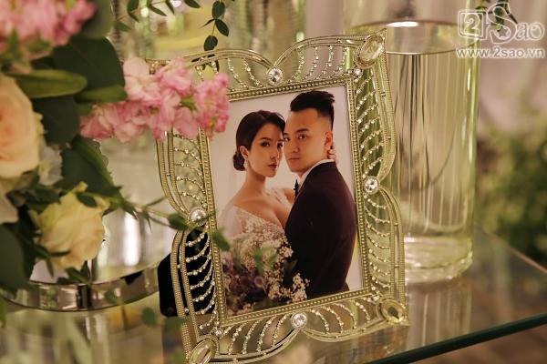 Bức ảnh cưới của Diệp Lâm Anh và chồng được phóng to để ở sảnh chào đón khách mời