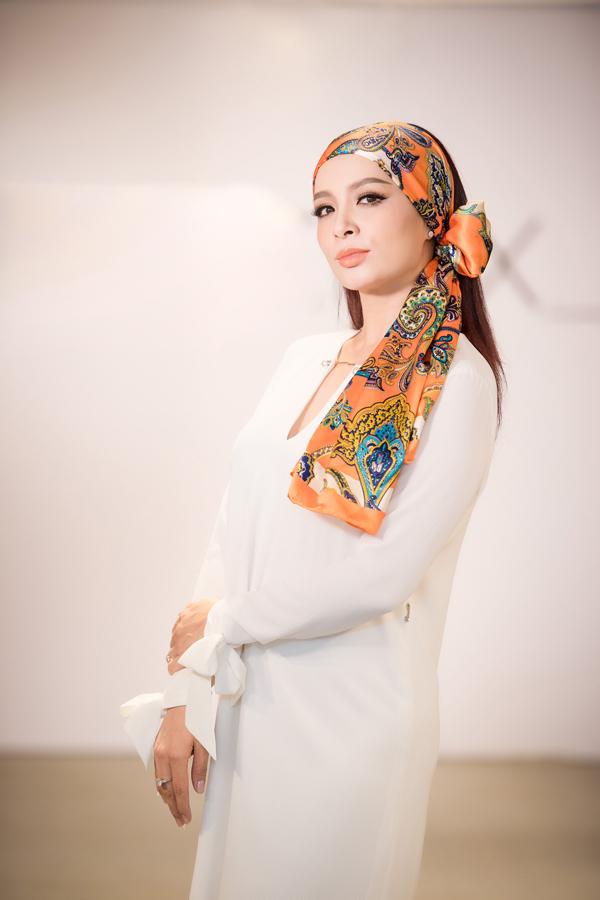 Thúy Hằng cá tính và nổi bật với chiếc khăn đeo trên đầu.