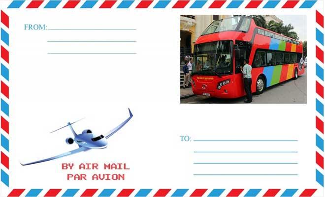 Đầu tiên, với ngoại hình nhiều sọc chéo sặc sỡ sắc màu, chiếc xe bus 2 tầng mui trần khiến nhiều người liên tưởng đến một chiếc phong bì di động di chuyển trên phố. Chưa rõ bên trong đựng gì nhưng ngoại hình của nó đã kích thích thị giác và tạo ra một sự “háo hức” của não bộ về... phần lõi bên trong với những ai ưa thích sự tưởng tượng.