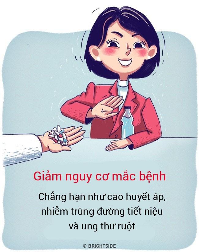 Nước giảm nguy cơ mắc ung thư ruột vì nó chính là một loại thuốc nhuận tràng giúp phân không bị cứng và bạn đi tiêu dễ dàng hơn, ngăn ngừa táo bón.