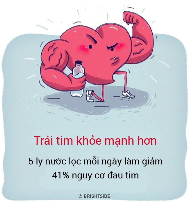 Một nghiên cứu công bố trên Tạp chí Dịch tễ học Mỹ cho thấy những người uống nhiều nước lọc mỗi ngày sẽ giảm nguy cơ tử vong do những cơn đau tim tới 41% so với những người uống ít nước.
