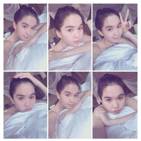 Những bức ảnh này sẽ được đăng tải lên trang cá nhân với những lời nhắn như "chúc ngủ ngon" hay chia sẻ về một điều gì đó trong ngày của Ngọc Trinh.
