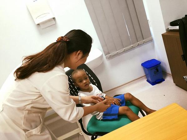 Bé Đạt được anh Nghĩa cho đi khám sức khỏe định kỳ ở bệnh viện Nhi Đồng Tp Hồ Chí Minh.
