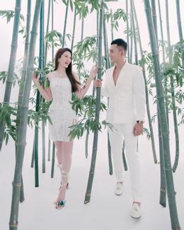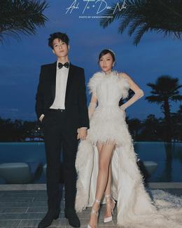 Phương Trinh Jolie dù không mặc váy cưới ngắn trong hôn lễ chính thức, song khi thực hiện bộ ảnh cưới với đa dạng phong cách cũng lựa chọn vài thiết kế váy ngắn trẻ trung.
