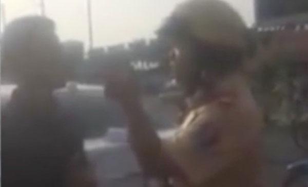 Hình ảnh trung úy Khoa đánh người được cho là vi phạm giao thông được người dân
