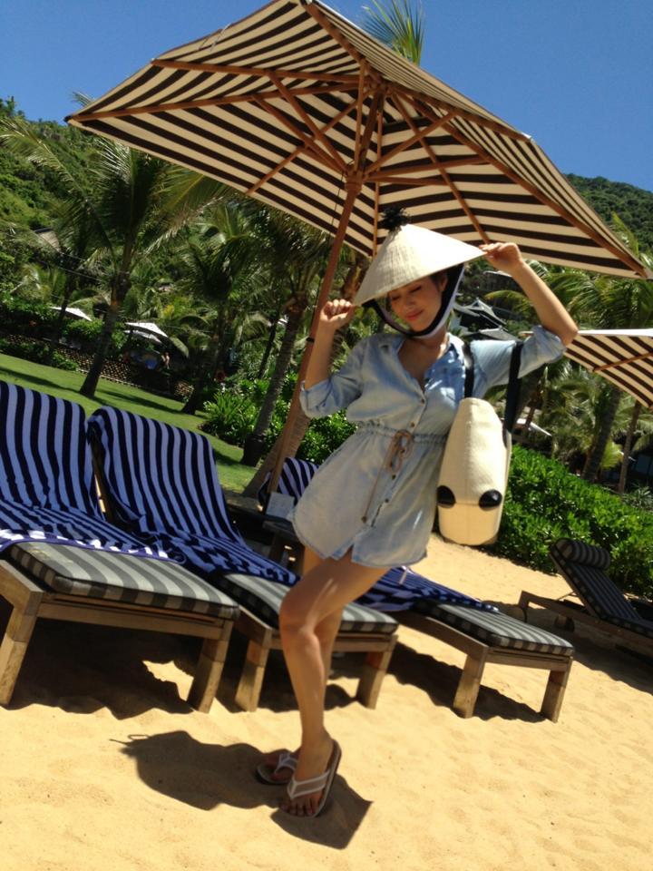 Người đẹp nổi bật giữa thiên nhiên biển xanh cát trắng