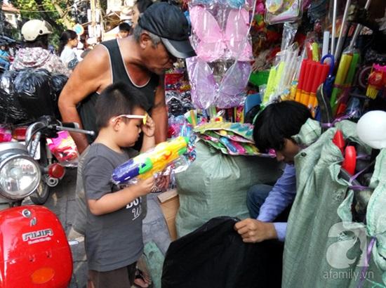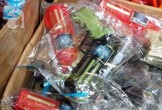 Nhiều loại súng nước, súng bắn bong bóng có tính bạo lực được người bán bày cả thùng ra lề đường để thu hút người dân, trẻ nhỏ.