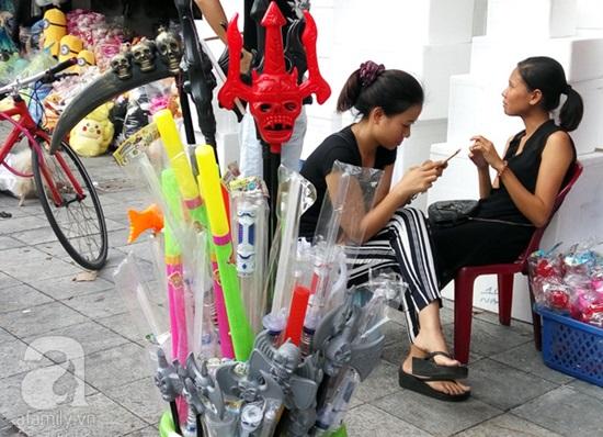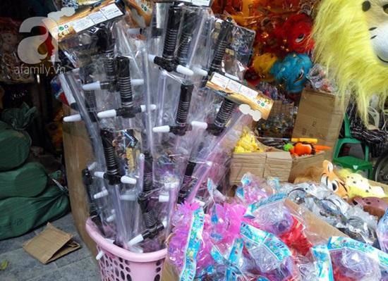 Ngoài các loại súng ống thì kiếm nhựa phát sáng cũng được bày bán tràn lan.