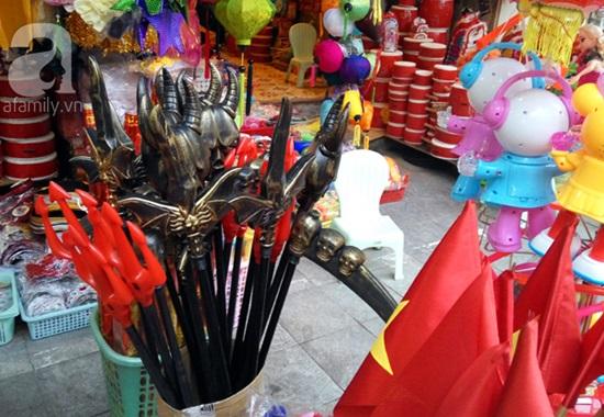 Còn gần 1 tháng nữa đến Tết Trung thu, hàng chục cửa hàng tại phố Hàng Mã (Hoàn Kiếm - Hà Nội) bắt đầu nhập các loại đồ chơi về bán. Tuy nhiên, theo ghi nhận của Phóng viên thì ngoài các loại đèn kéo quân, đèn ông sao, mặt nạ, trống cơm... thì các loại đồ chơi mang tính bạo lực như: Súng ống, cung tên, đao kiếm, lưỡi hái, búa rìu, dùi cui nhựa, hay như miếng dán hoạt hình độc hại vẫn bán tràn lan.
