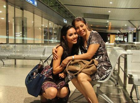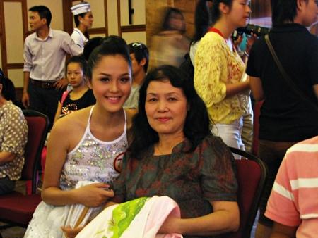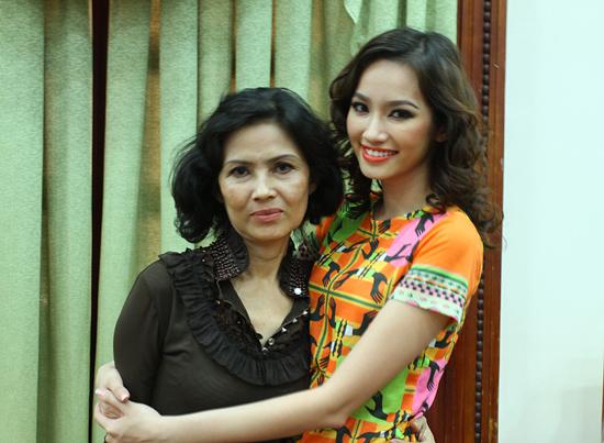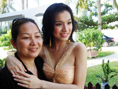 Hoa Hậu Ngọc Trinh xinh đẹp và nhỏ nhắn bên mẹ