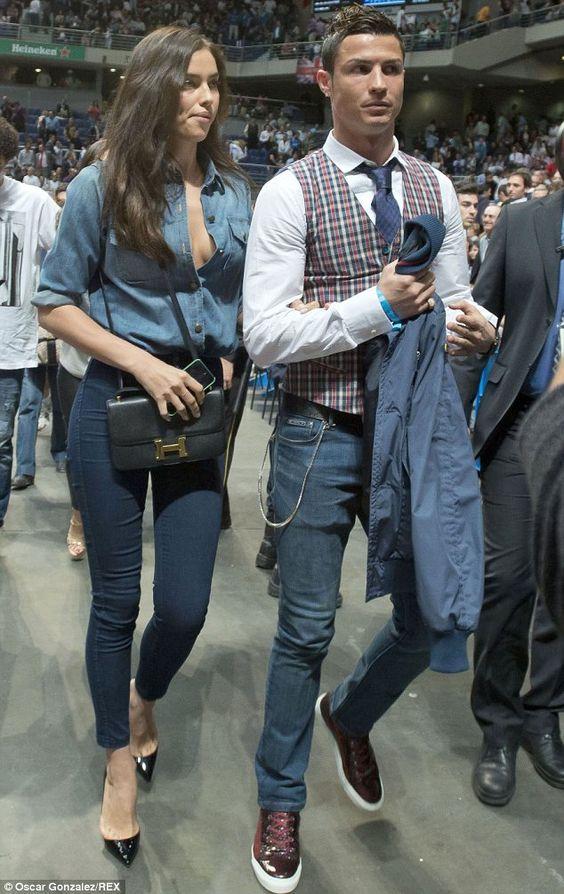 Dù ở sự kiện hay hoạt động đời thường, Irina luôn giữ hình ảnh của mình. Cùng Ronaldo đi xem 1 giải đấu cô chọn trang phục đơn giản với set đồ denim on denim ôm trọn vóc dáng nóng bỏng. Siêu mẫu Nga còn không ngại bỏ hờ vài cúc áo để lộ vòng 1 hút hồn.