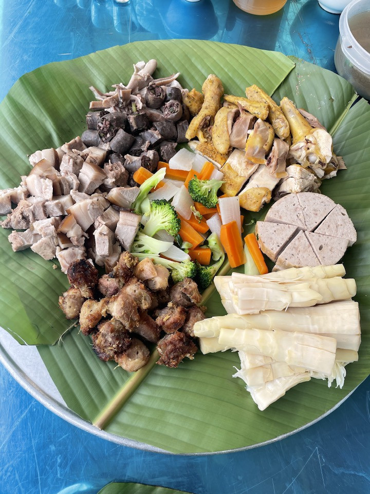 Tuy nhiên, mâm cỗ vẫn tươm tất, đầy đặn nhiều nguyên liệu tươi ngon.