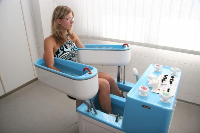 Bất cứ ai cũng biết được sự nguy hiểm chết người giữa điện và nước khi kết hợp với nhau. Nhưng với kiểu bồn tắm điện này, người tắm chỉ bị dòng điện cấp thấp chạy qua cơ thể. Đó là một cảm giác ngứa ran. Một số người thấy được thư giãn, trong khi có người lại cho rằng, họ thấy đau đớn.