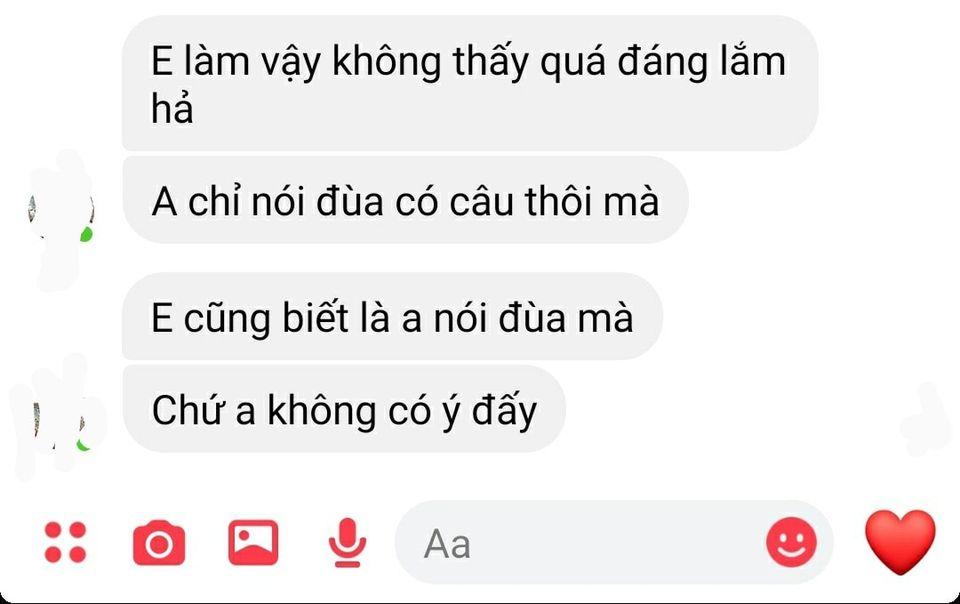 "Cứ cho là trêu vui đi nhưng cái câu đùa đấy làm mình cảm thấy hãm vô cùng. 1,2 lần không sao nhưng đây mình đã tỏ thái độ khó chịu cả chục lần rồi mà vẫn vậy".
