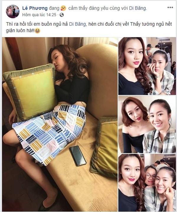 Mới đây, Lê Phương chia sẻ trên Facebook cá nhân những hình ảnh hậu trường phân đoạn Hương đến khách sạn gặp Nhi. Bức ảnh chụp lại cảnh Băng Di tranh thủ chợp mắt trong khi nghỉ xả hơi, với lời chú thích đầy tình cảm: “Thấy tướng ngủ hết giận luôn hà!!”.