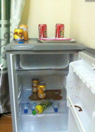 Đồ uống trong tủ lạnh bày bừa và đổ lênh láng. Ảnh: beatvn