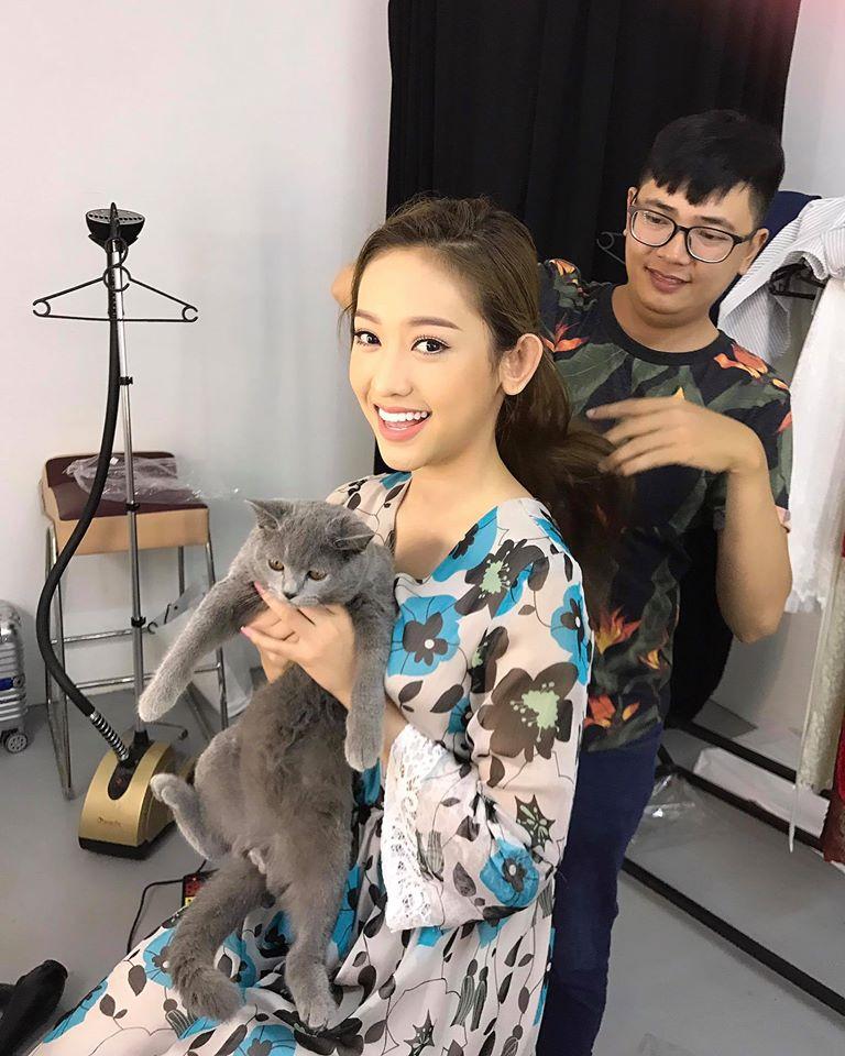 Thúy Vi mang mèo cưng Mikun đi làm.