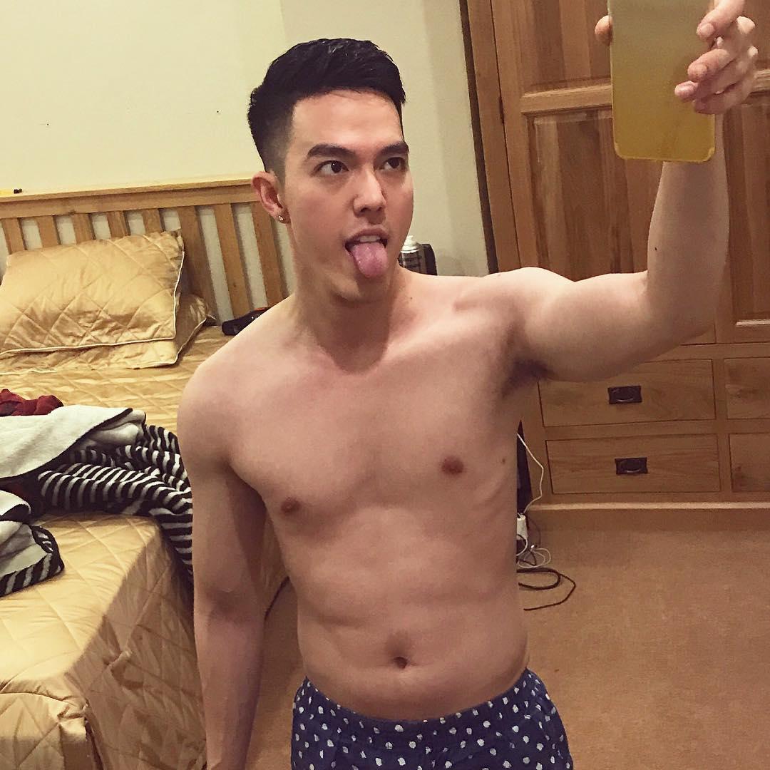 Minh Châu khoe ngực trần trong phòng ngủ.