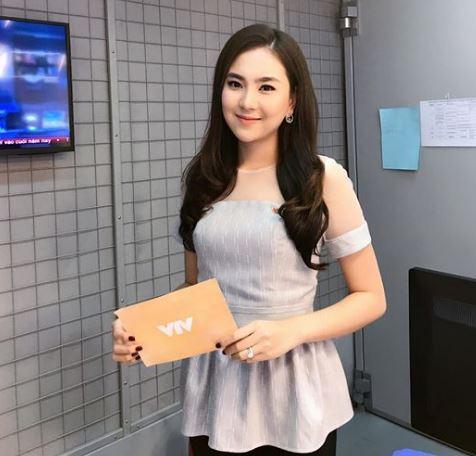 MC Mai Ngọc tranh thủ chụp ảnh trước giờ lên sóng.