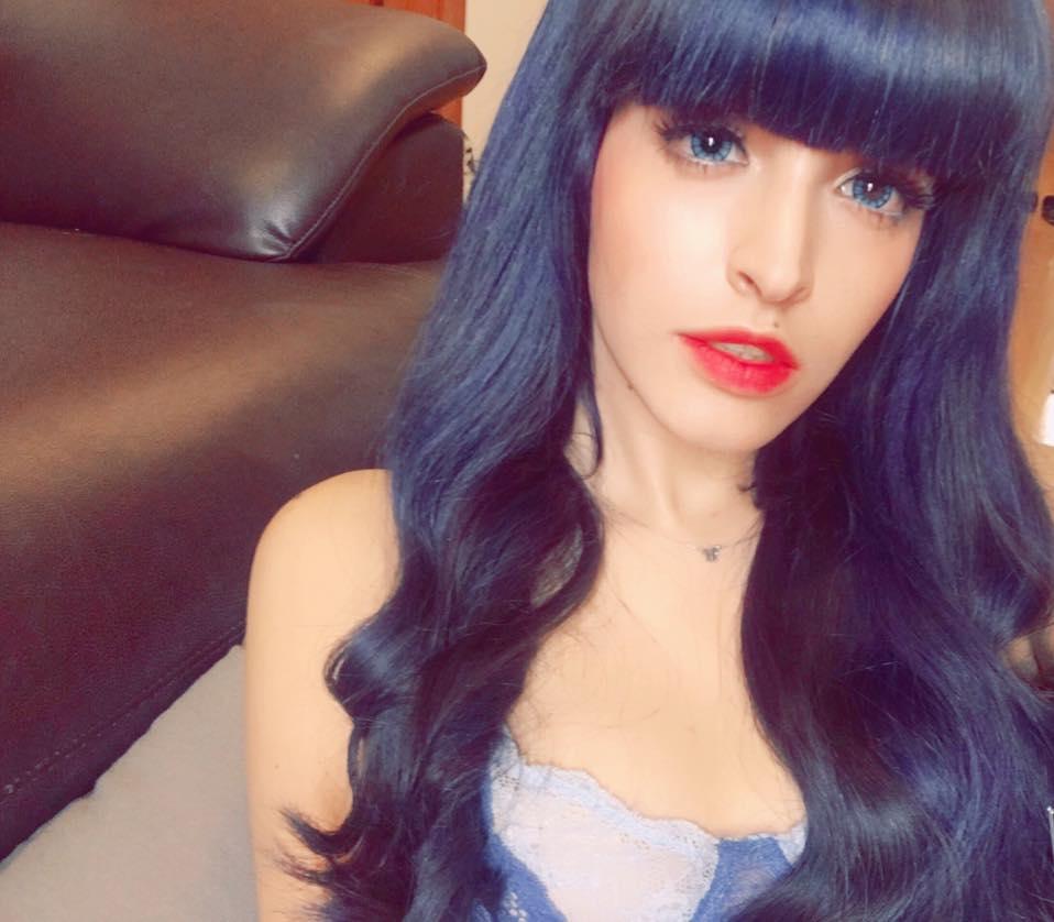 Andrea Aybar gây chú ý với tóc, mắt cùng tone màu xanh cùng lời nhấn mạnh: "Rõ ràng là tóc xanh! Tức là không phải màu tím cũng không phải màu đen".