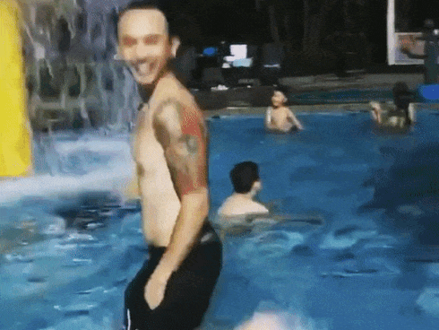 Trung Dũng Sĩ tinh nghịch chơi đùa dưới nước.