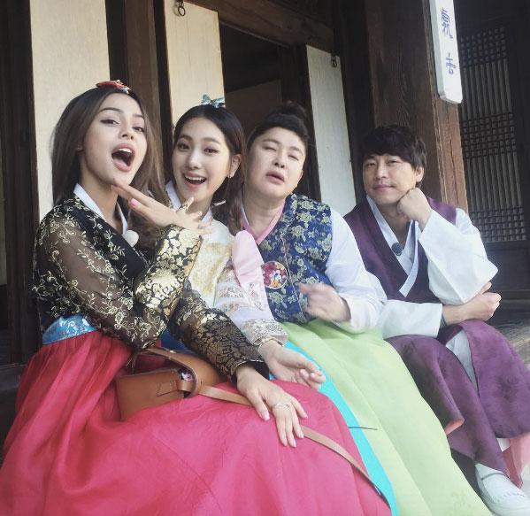 Cô nàng nhí nhảnh trong trang phục truyền thống Hanbok.