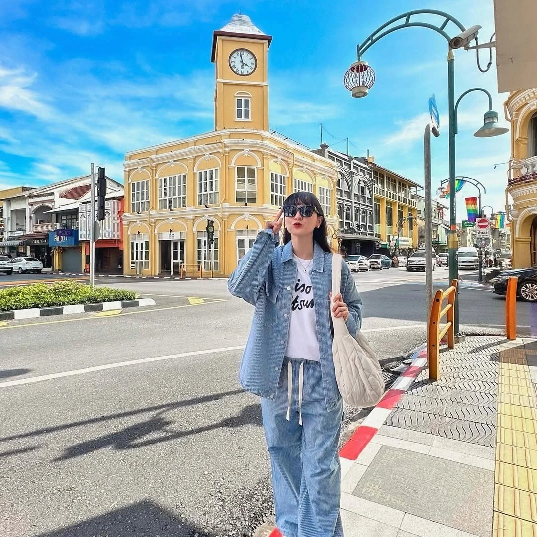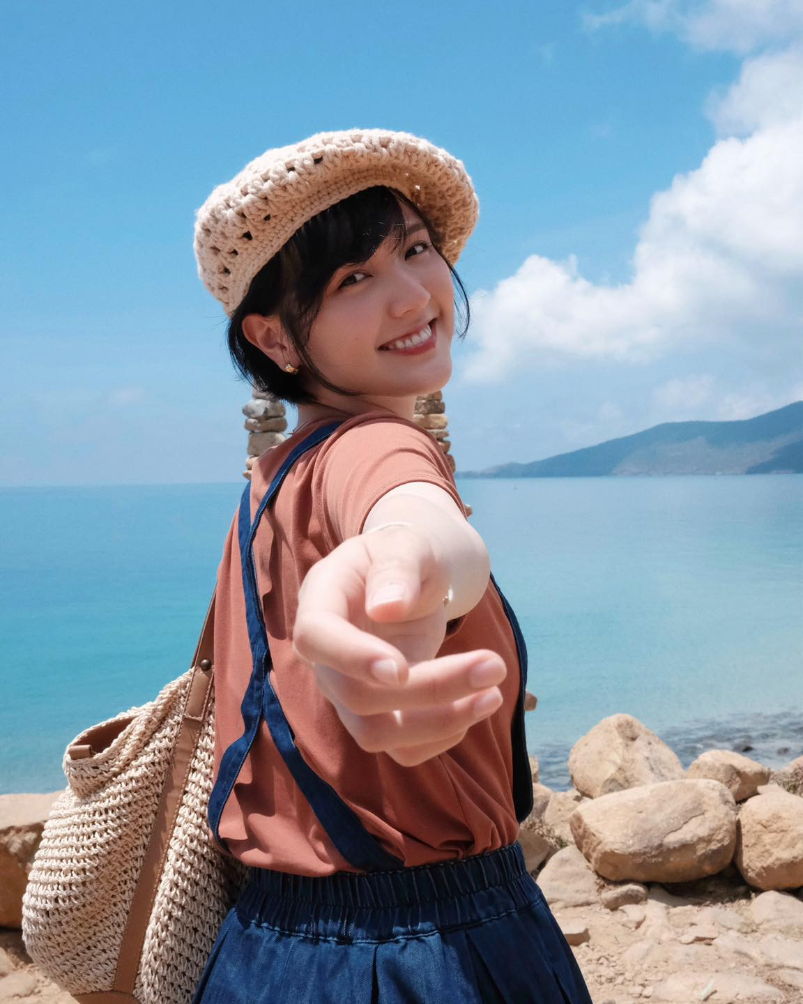 Ở một hình ảnh khác, Hải Tú diện nguyên bộ đồ thể thao mang sắc trung tính, kết hợp khăn đỏ cột hông như một điểm nhấn bất ngờ. Biểu cảm tự nhiên, tạo dáng ngẫu hứng, cô mang đến năng lượng tươi mới, phá bỏ hình ảnh “nàng thơ” khuôn mẫu. Phong cách này gợi nhớ đến xu hướng Y2K đang được ưa chuộng, nơi sự năng động và nét trẻ trung được đề cao.