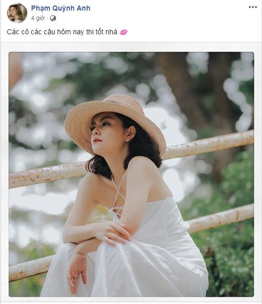 Phạm Quỳnh Anh lại khá nhẹ nhàng nhưng đầy tình cảm: "Các cô các cậu ngày hôm nay thi tốt nhá".