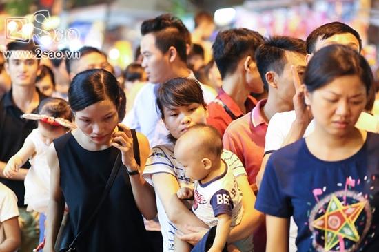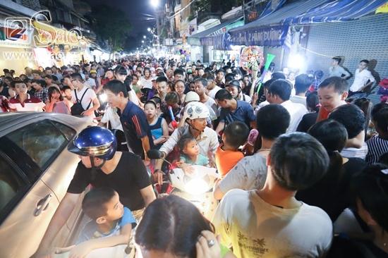 Nhiều gia đình cùng các bạn trẻ đã phải chen chúc mướt mồ hôi tại tuyến phố lồng đèn đông đúc.
