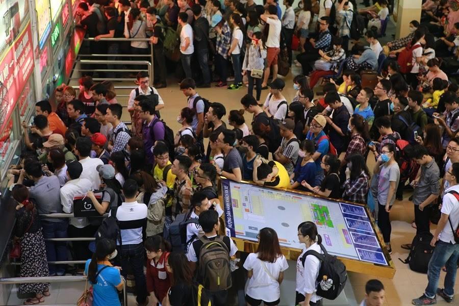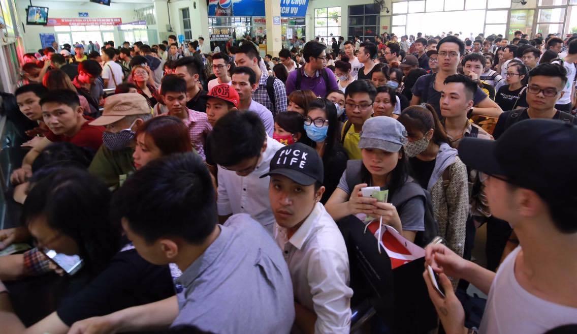 Đỉnh điểm diễn ra vào ngày 29/4 lượng người có mặt tại các bến xe lớn như Mỹ Đình đều chật kín. Nhiều người còn phải chờ cả ngày để bắt được chuyến xe cho kịp về quê. Thậm chí, trẻ em và người lớn đều tỏ ra mệt mỏi trước tình trạng muốn đi mà không có xe để lên.