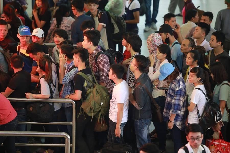 Nhiều nhà xe còn giơ tay từ chối khách bởi xe đã đủ người, cảnh tượng chen lấn để được lên xe cũng diễn ra.