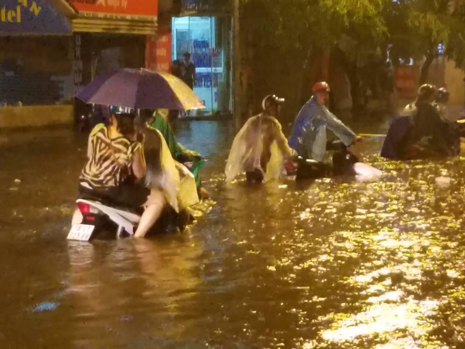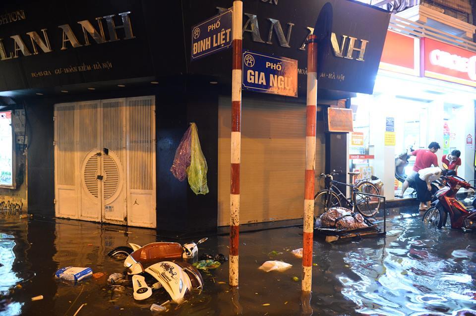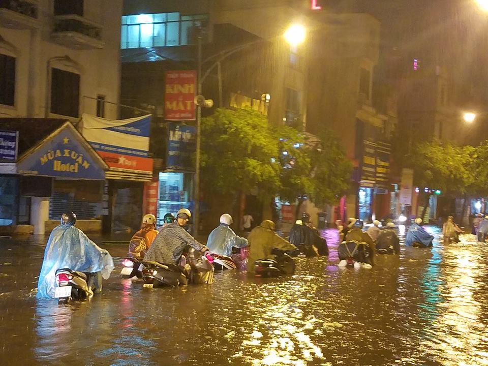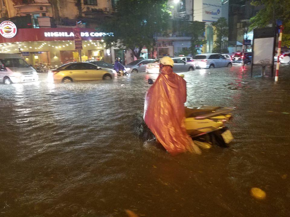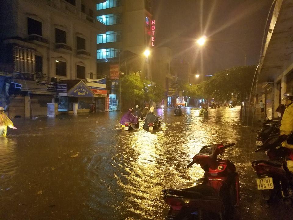 Theo ghi nhận, các tuyến phố trung tâm của Thủ đô như Định Liệt, Tạ Hiện, Lương Ngọc Quyến,... ngập sâu trong biển nước.
