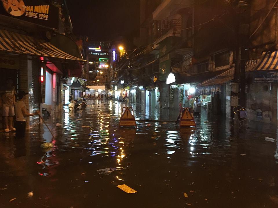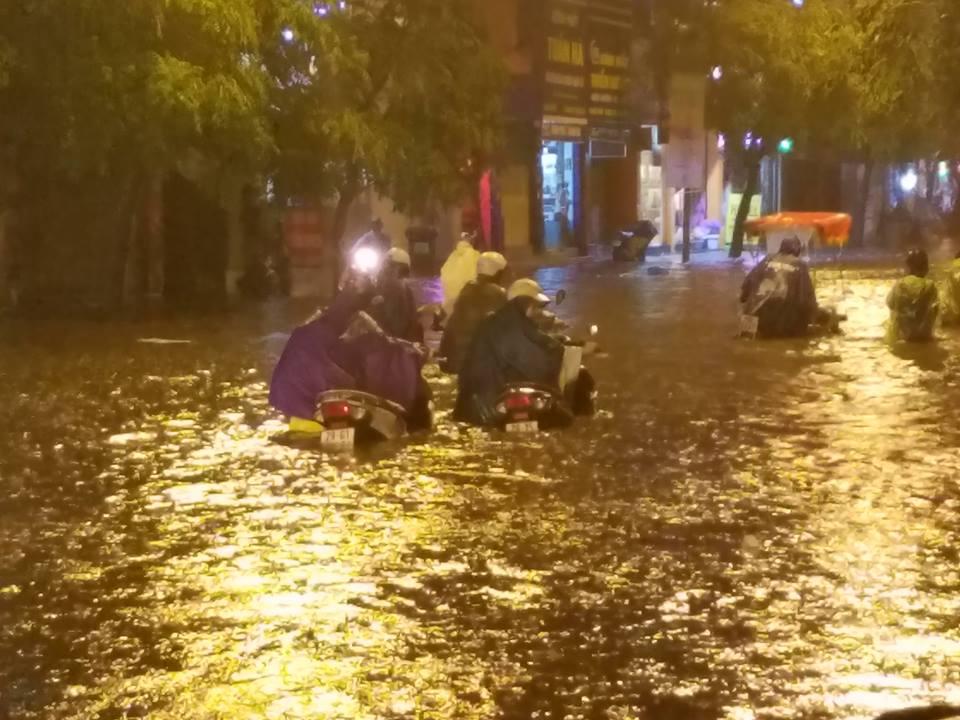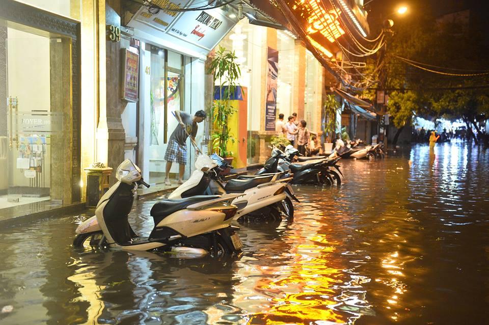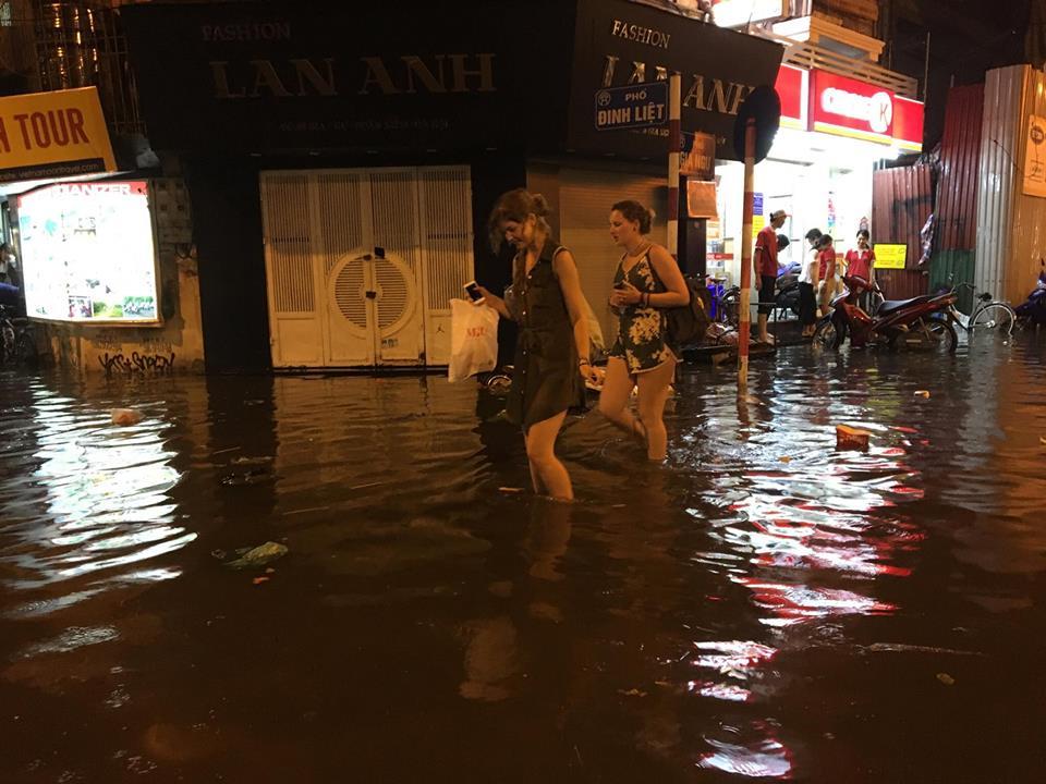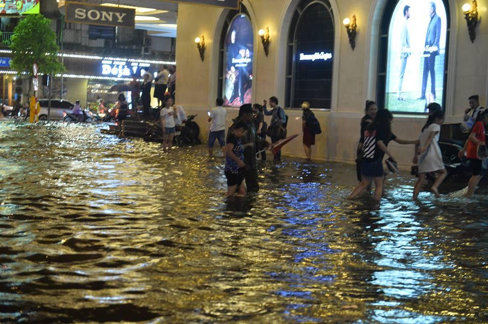 Theo ghi nhận, các tuyến phố trung tâm của Thủ đô như Định Liệt, Tạ Hiện, Lương Ngọc Quyến,... ngập sâu trong biển nước.