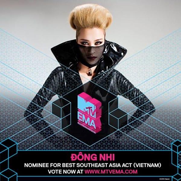Đông Nhi là đại diện chính thức và duy nhất của Việt Nam năm nay xuất hiện trong bảng đề cử Best Southeast Asia Act (Nghệ sỹ Đông Nam Á xuất sắc) sau khi vượt qua cuộc bầu chọn gắt gao trong nước khi vượt qua loạt nghệ sĩ tên tuổi cũng như đáp ứng đầy đủ các tiêu chí của MTV Việt Nam.