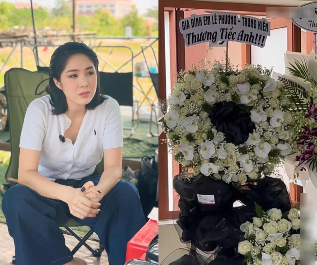 Rất nhiều anh em nghệ sĩ thân thiết lẫn người hâm mộ đã đến tiễn đưa Quý Bình về nơi vĩnh hằng, trong đó có Lê Phương. Nữ diễn viên cùng ông xã Trung Kiên và con trai lớn đã gửi vòng hoa và đến viếng người anh thân thiết.