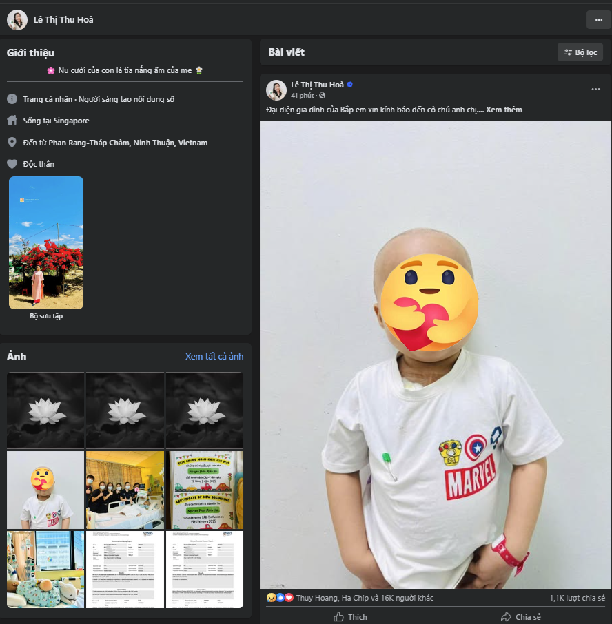 Dù chị Thu Hòa khóa phần bình luận công khai trên Facebook cá nhân nhưng hiện rất nhiều fanpage của Việt Nam đã chia sẻ lại thông tin này. Dưới mỗi bài đăng, hàng nghìn người bày tỏ sự thương xót cho cậu nhóc nhỏ bé đã kiên cường chiến đấu lại căn bệnh hiểm nghèo suốt thời gian dài.