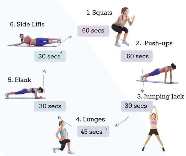 Những bài tập circuit bạn hoàn toàn có thể tập ở nhà, vì nó không cần một dụng cụ nào đi kèm cả. Dành từ 10 – 45 phút mỗi ngày cho circuit training, rồi bạn sẽ thấy cơ thể thay đổi chỉ trong một thời gian rất ngắn.