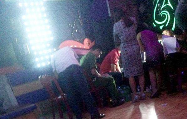 Cơ quan Công an lập biên bản tại hiện trường bên trong tụ điểm karaoke ADM Club