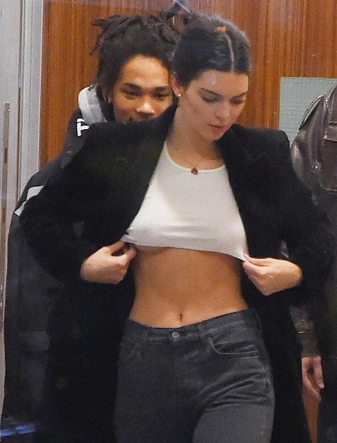 Cô nàng Kendall Jenner phải liên tục đưa tay lên kéo áo xuống để che phần nhạy cảm để tránh bị hớ hênh.