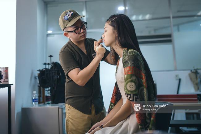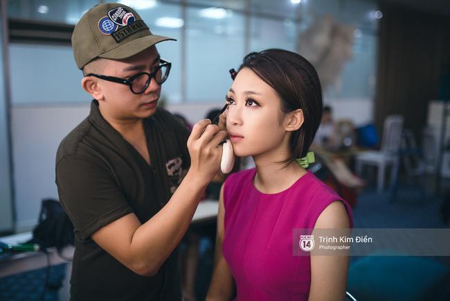 Hoa hậu Đỗ Mỹ Linh tạo dáng đáng yêu khi đang make up