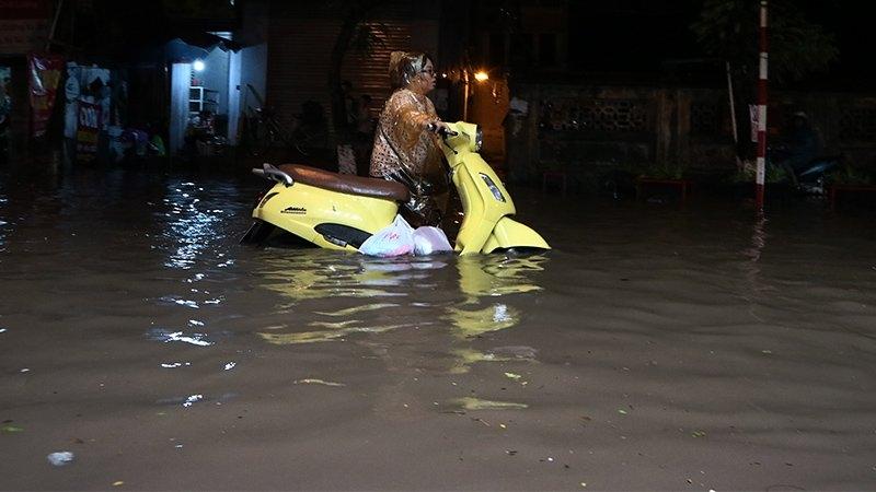 Cơn mưa to tối qua khiến nhiều tuyến đường Hà Nội ngập nặng. Ảnh chụp trên phố Đội Cấn. Ảnh: Lê Anh Dũng