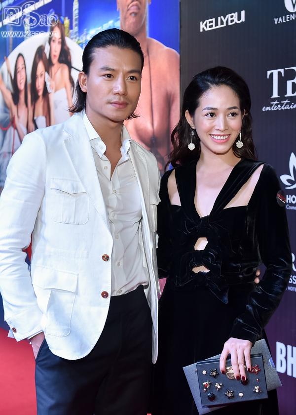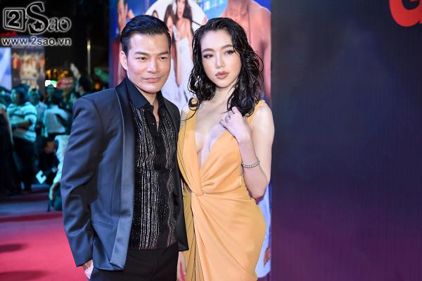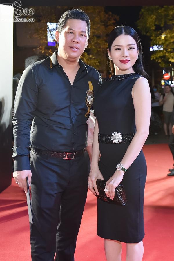 Vợ chồng Lệ Quyên cùng diện đồ đen giống nhau trong buổi ra mắt phim