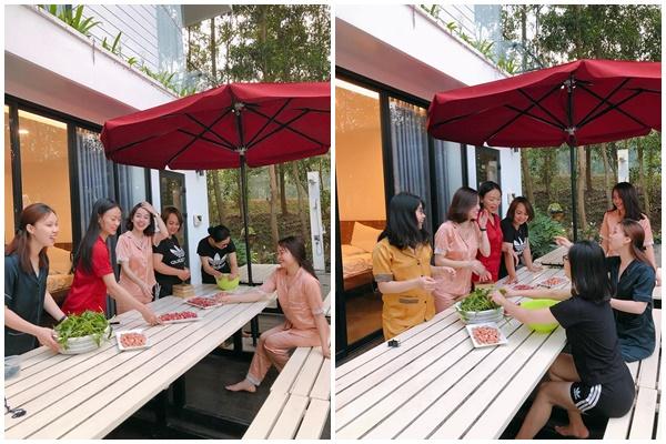Hot girl trò chuyện vui vẻ cùng hội chị em và tự chuẩn bị những bữa ăn.