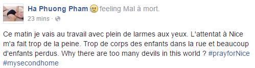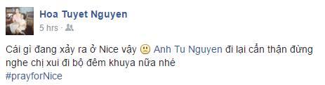 Ngoài ra , trên facebook của các du học sinh, sinh viên đã có những chia sẻ khác nhau và tỏ ra lo lắng cho người thân, bạn bè sinh sống và học tập ở Pháp :